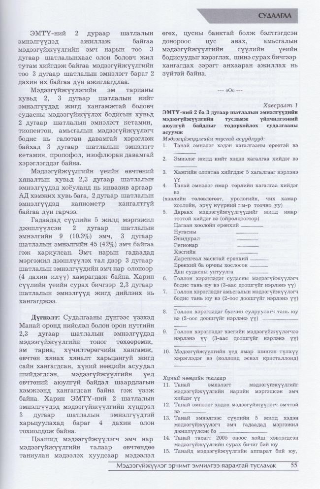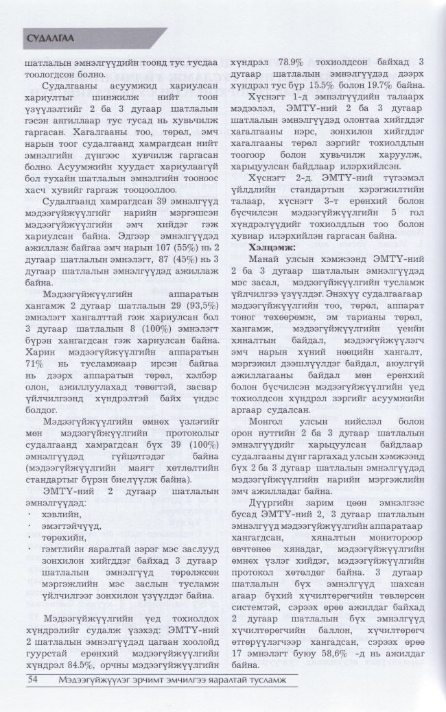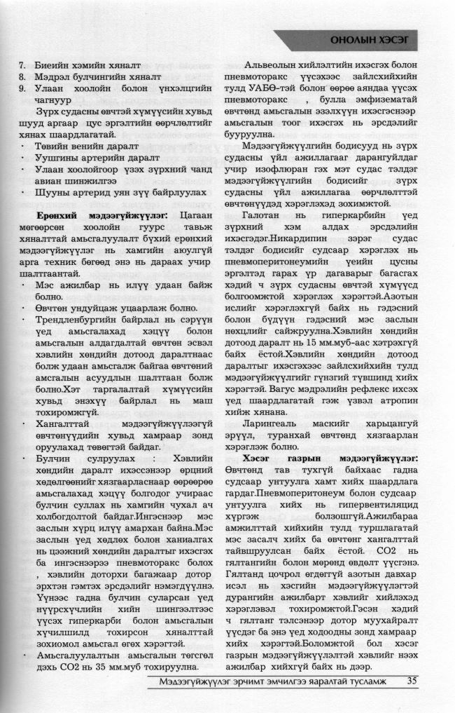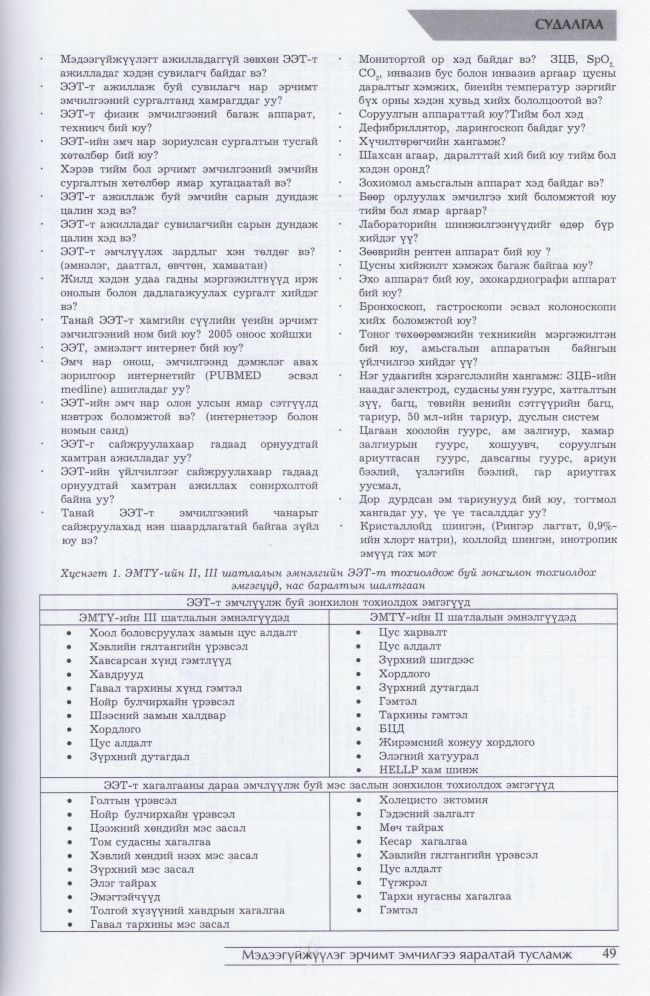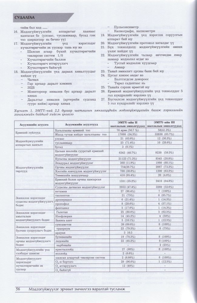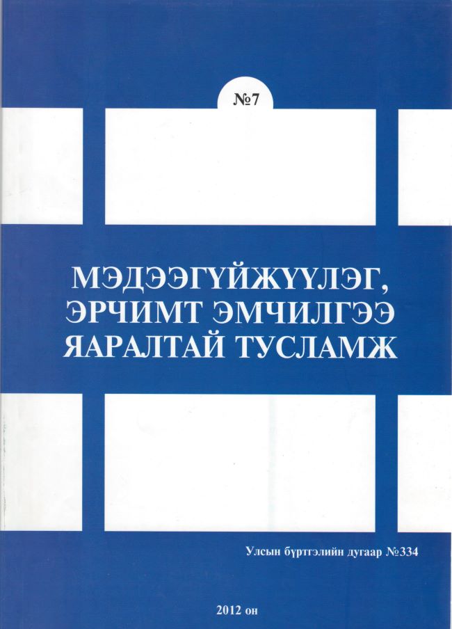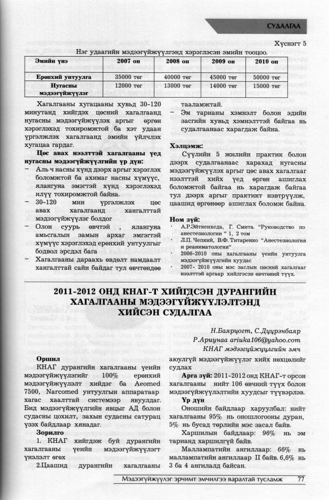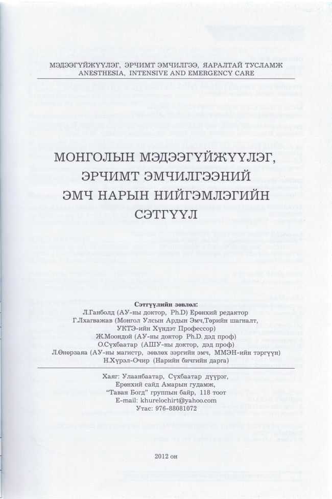 Мэдээгүйжүүлэг, Эрчимт эмчилгээ, Яаралтай тусламж №7 - 2012 он
