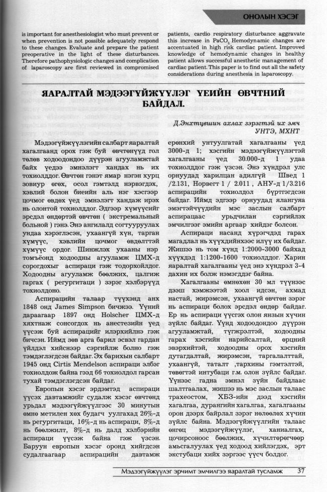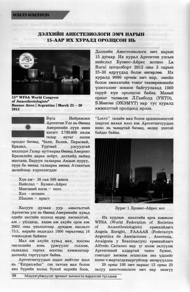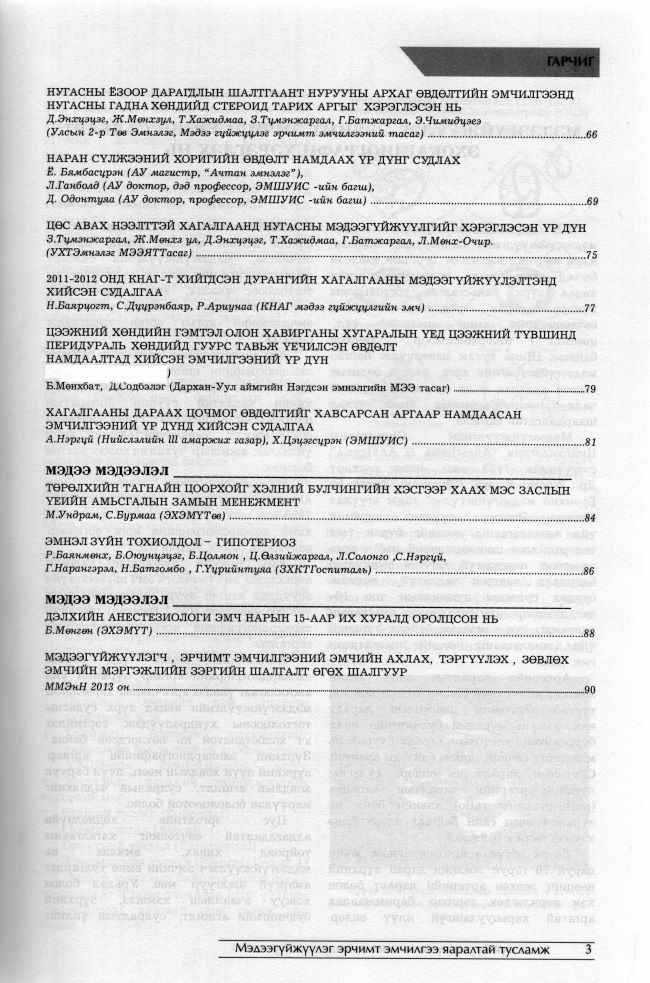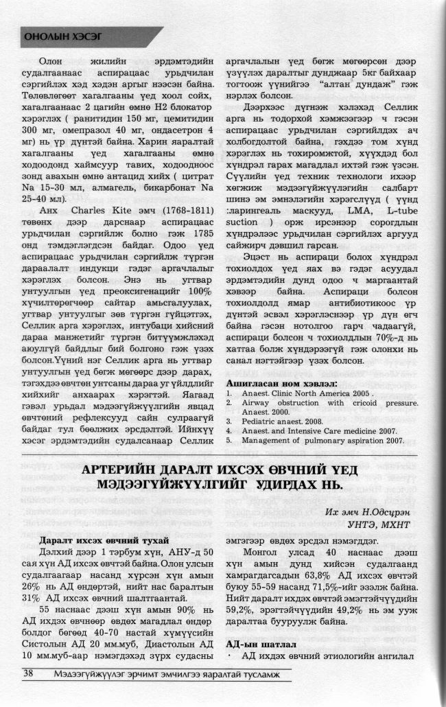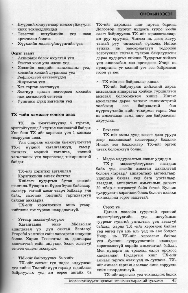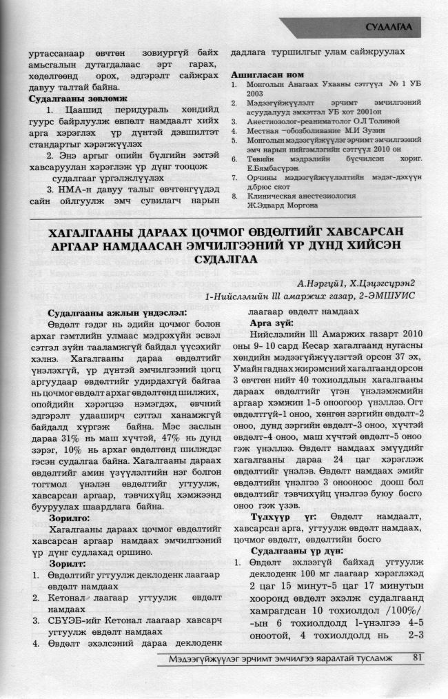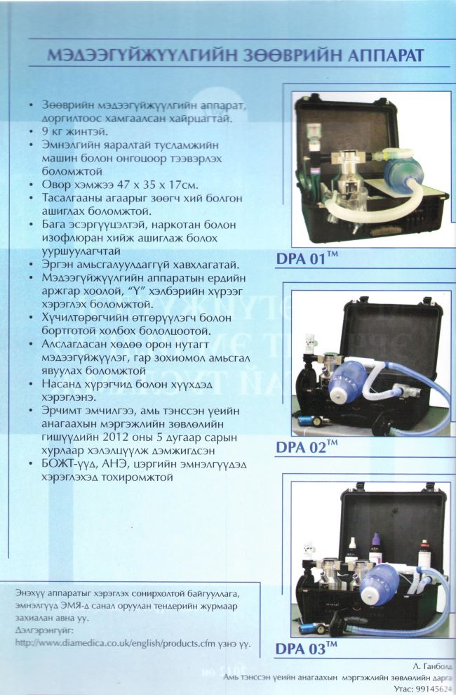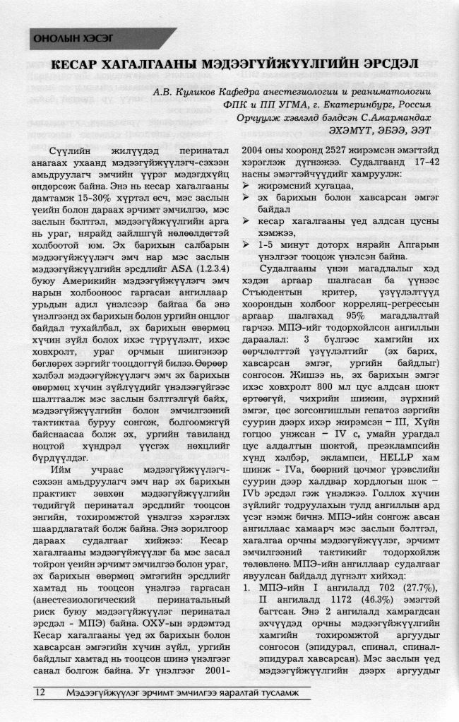 Мэдээгүйжүүлэг, Эрчимт эмчилгээ, Яаралтай тусламж №7 - 2012 он