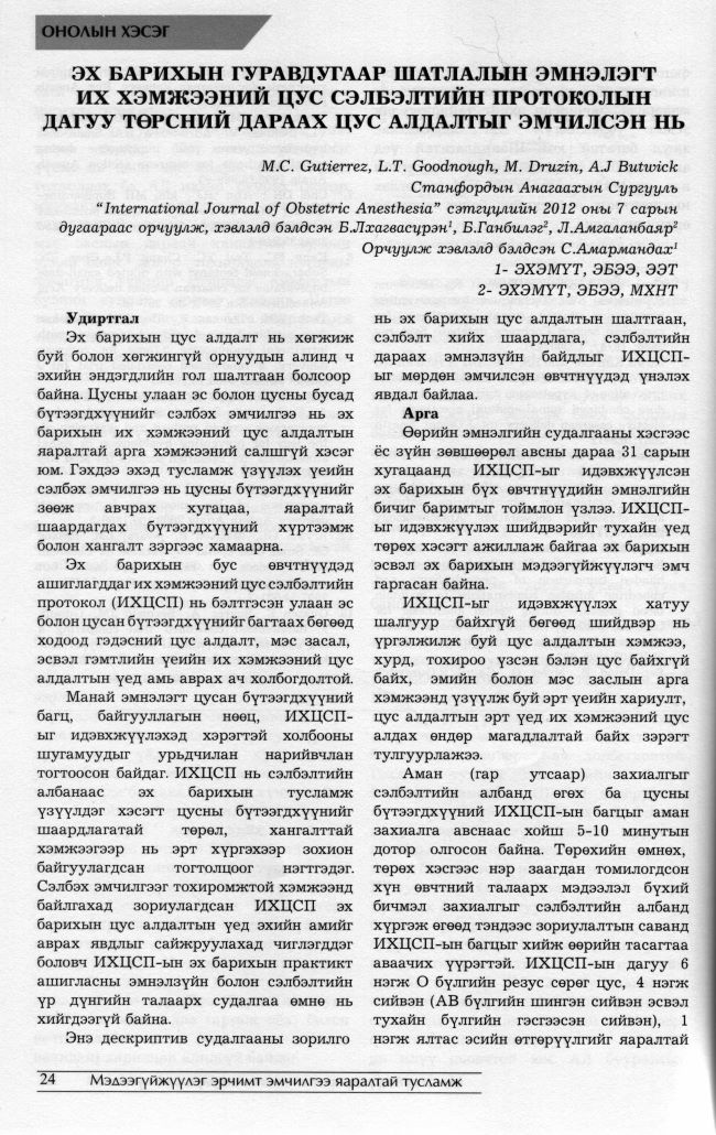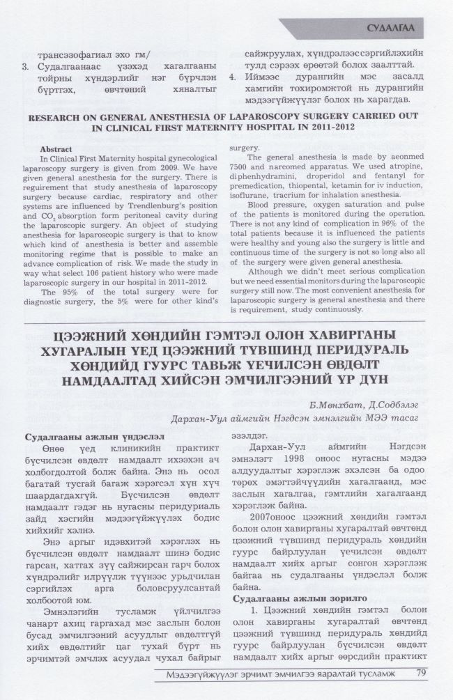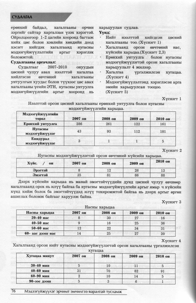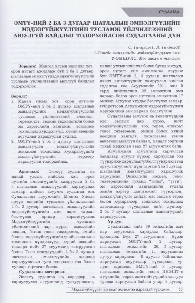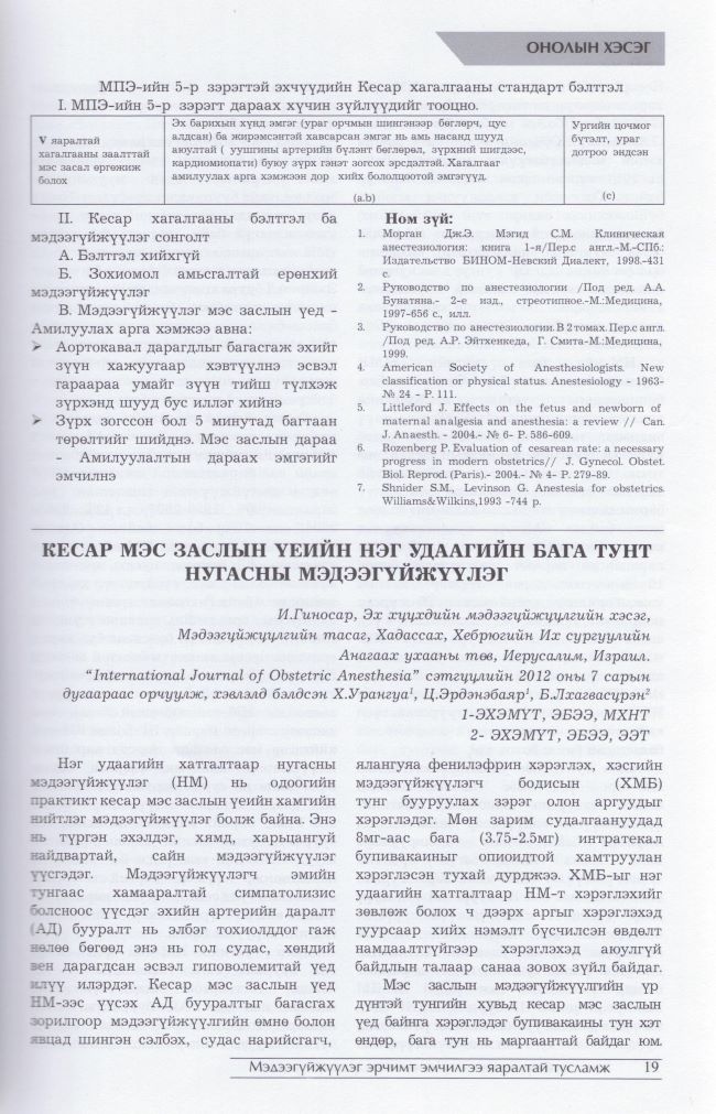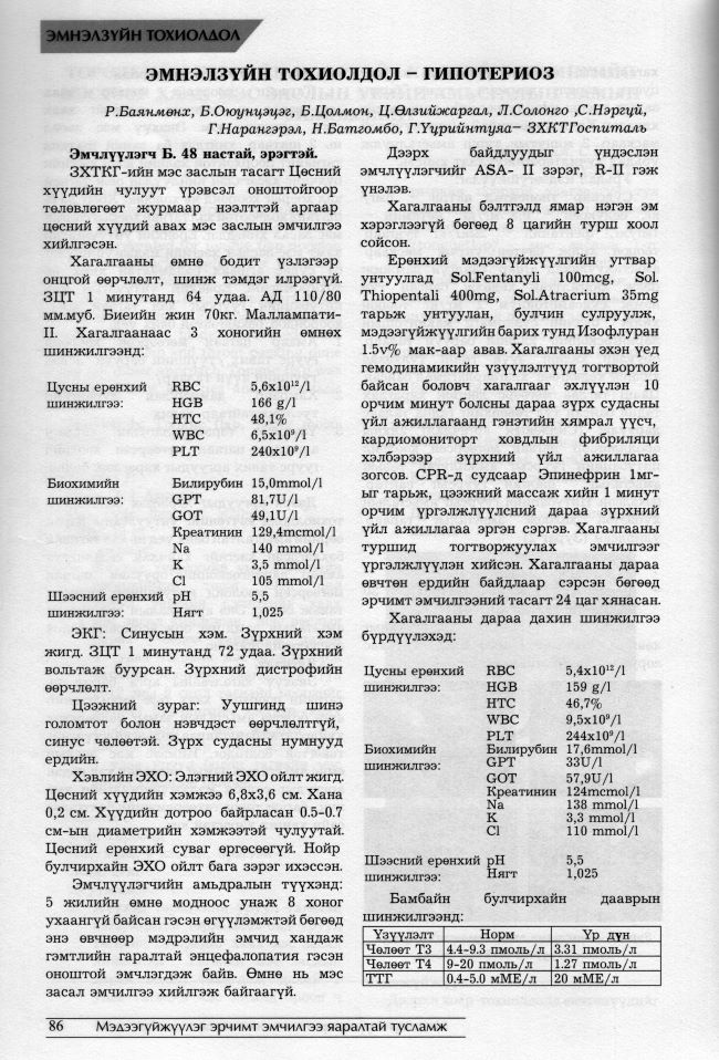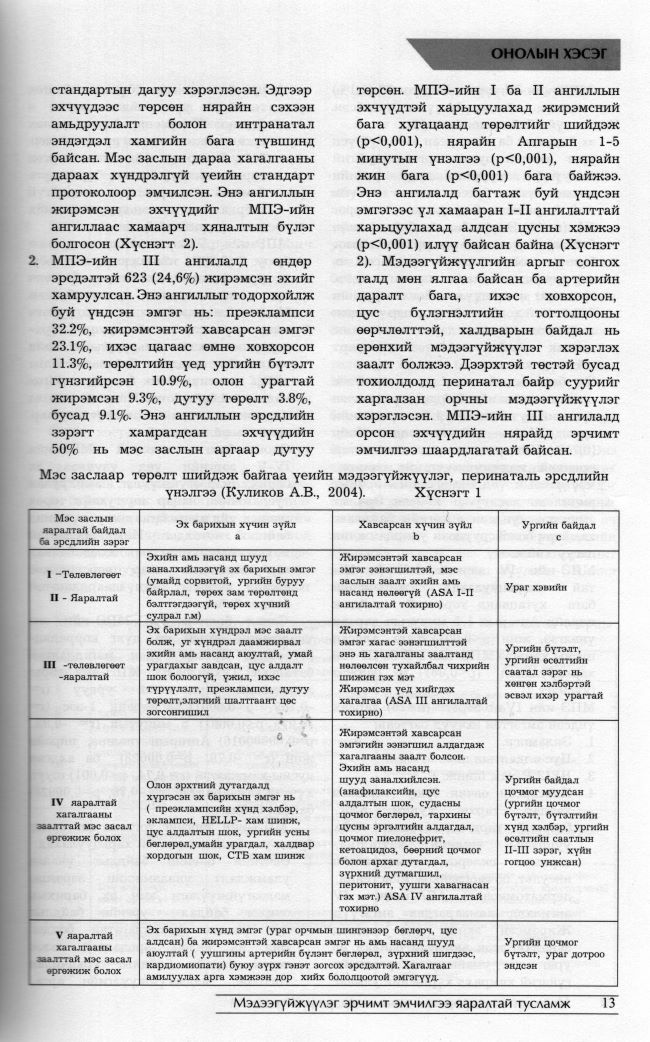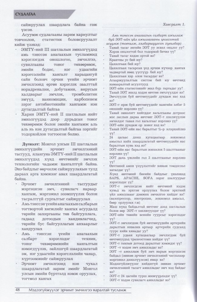 Мэдээгүйжүүлэг, Эрчимт эмчилгээ, Яаралтай тусламж №7 - 2012 он