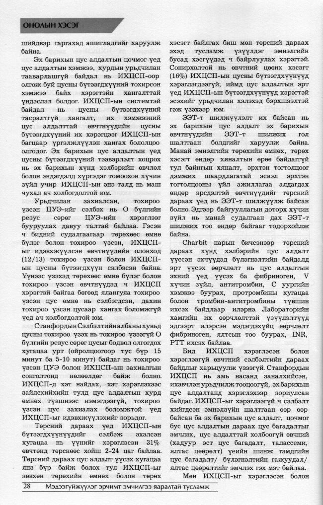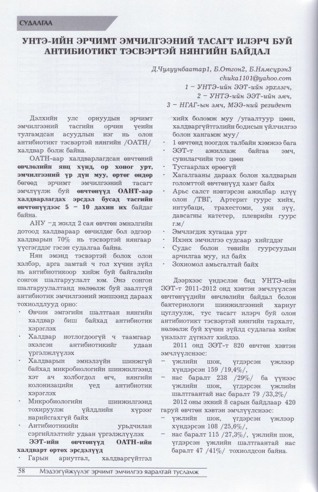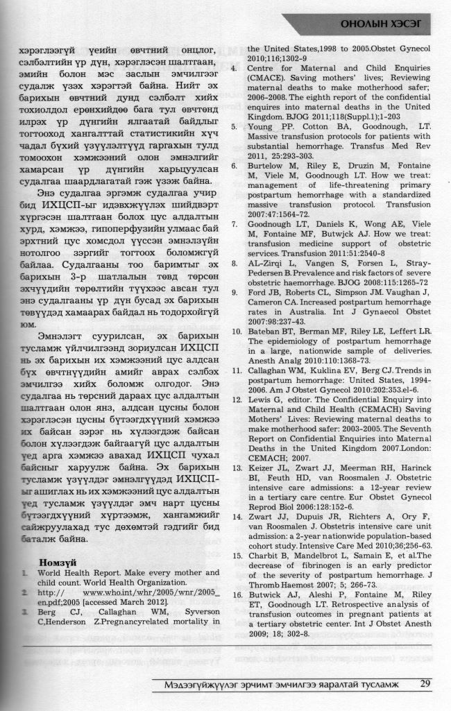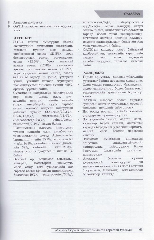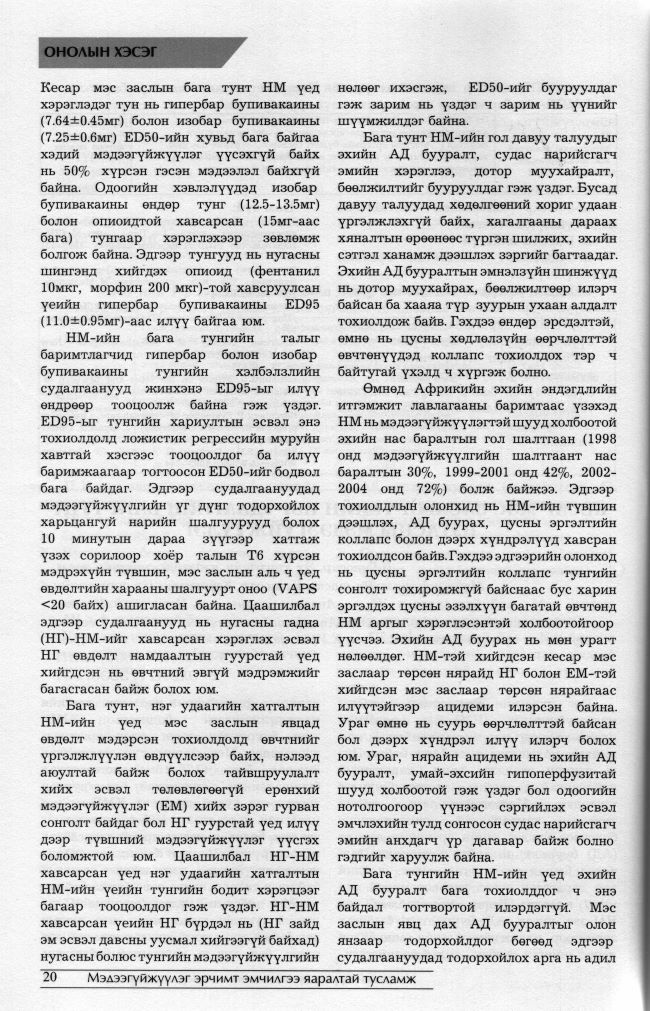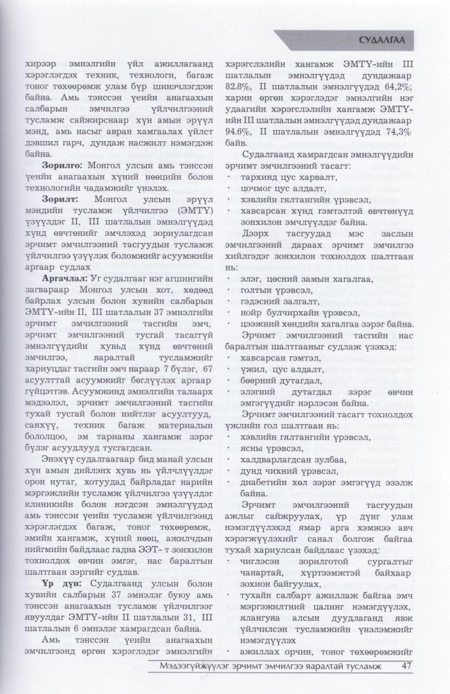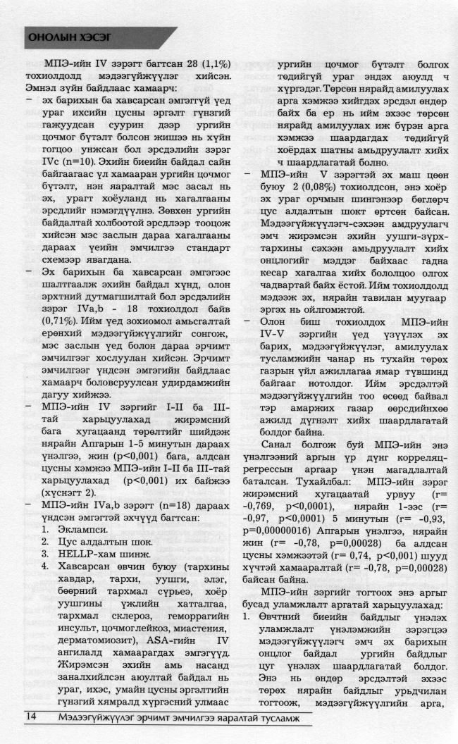 Мэдээгүйжүүлэг, Эрчимт эмчилгээ, Яаралтай тусламж №7 - 2012 он