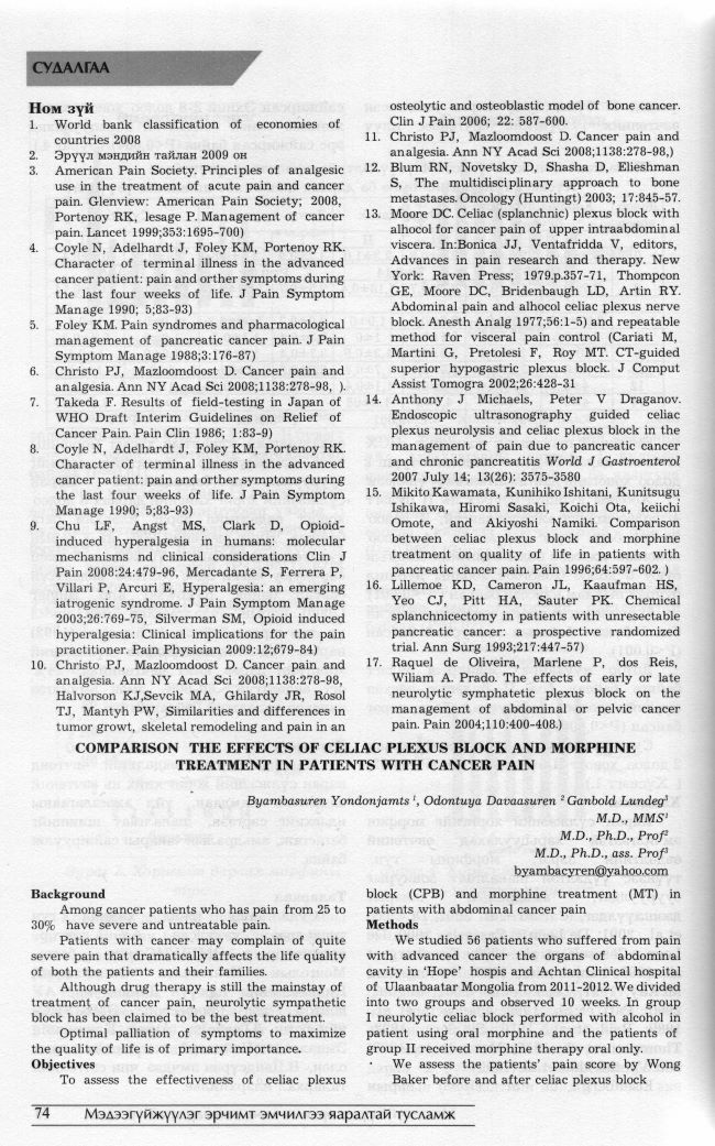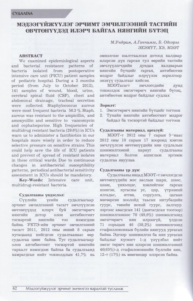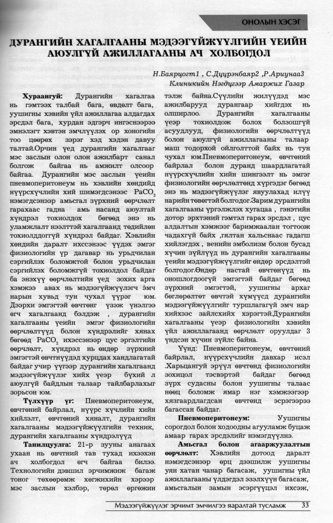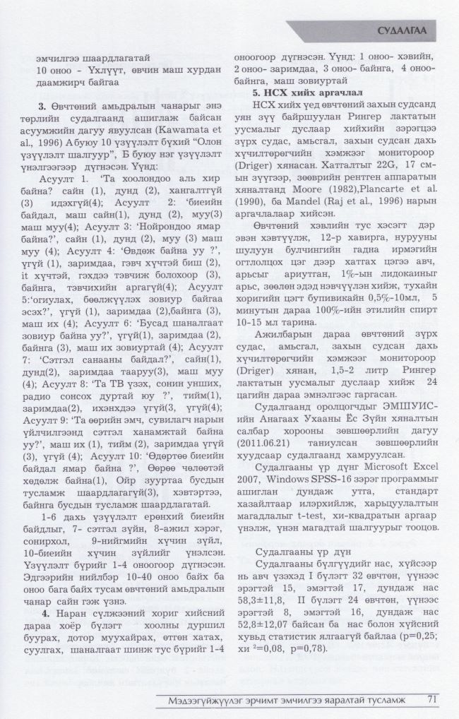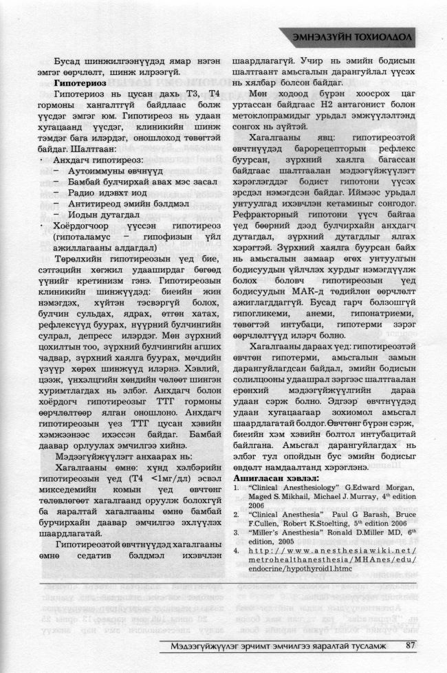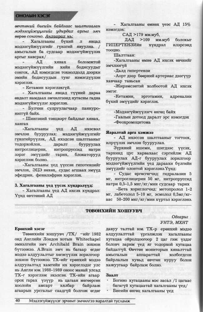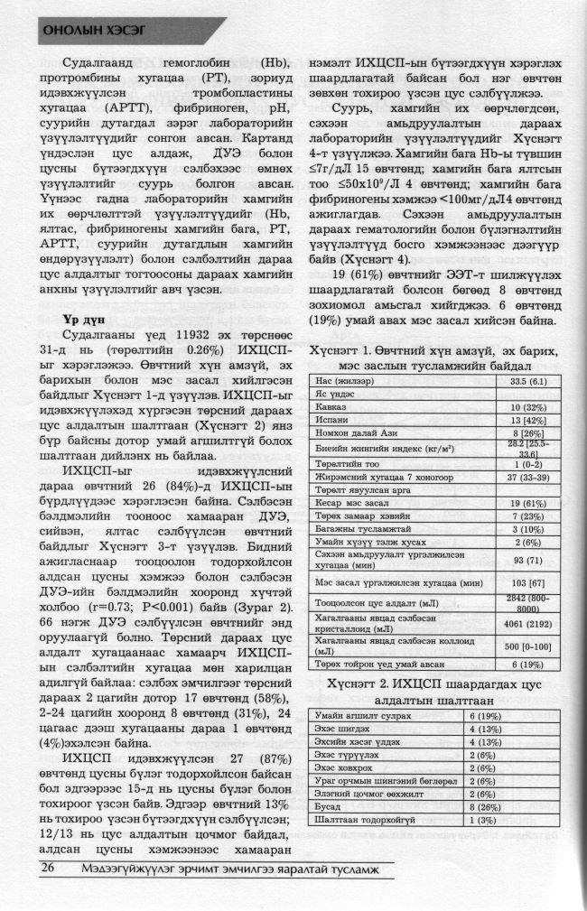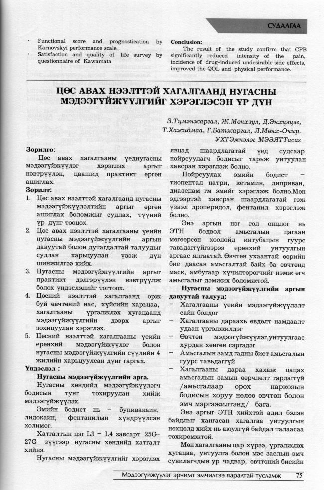Мэдээгүйжүүлэг, Эрчимт эмчилгээ, Яаралтай тусламж №7 - 2012 он
