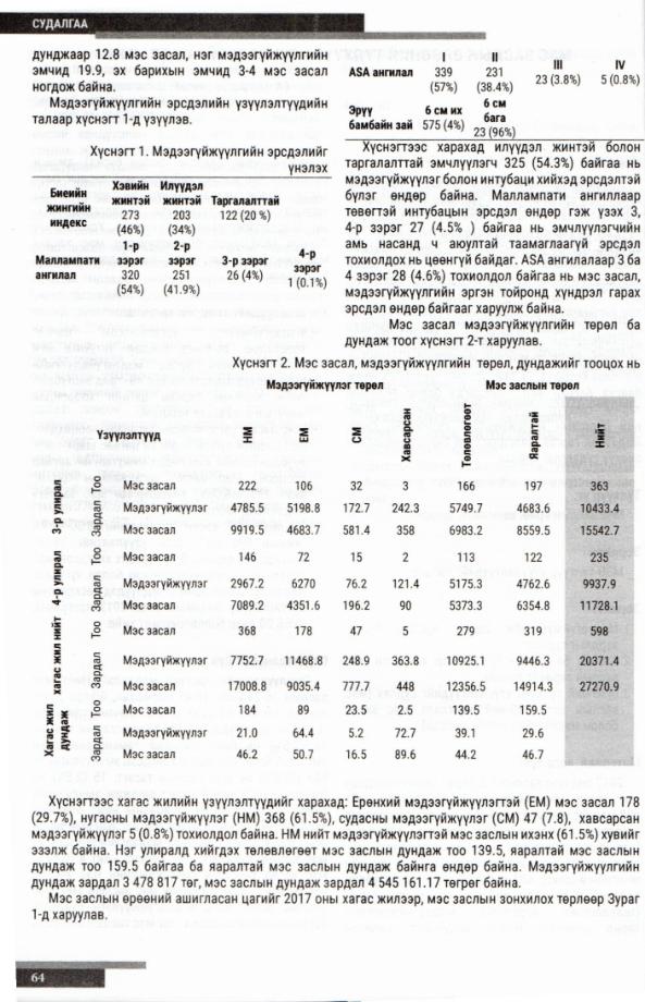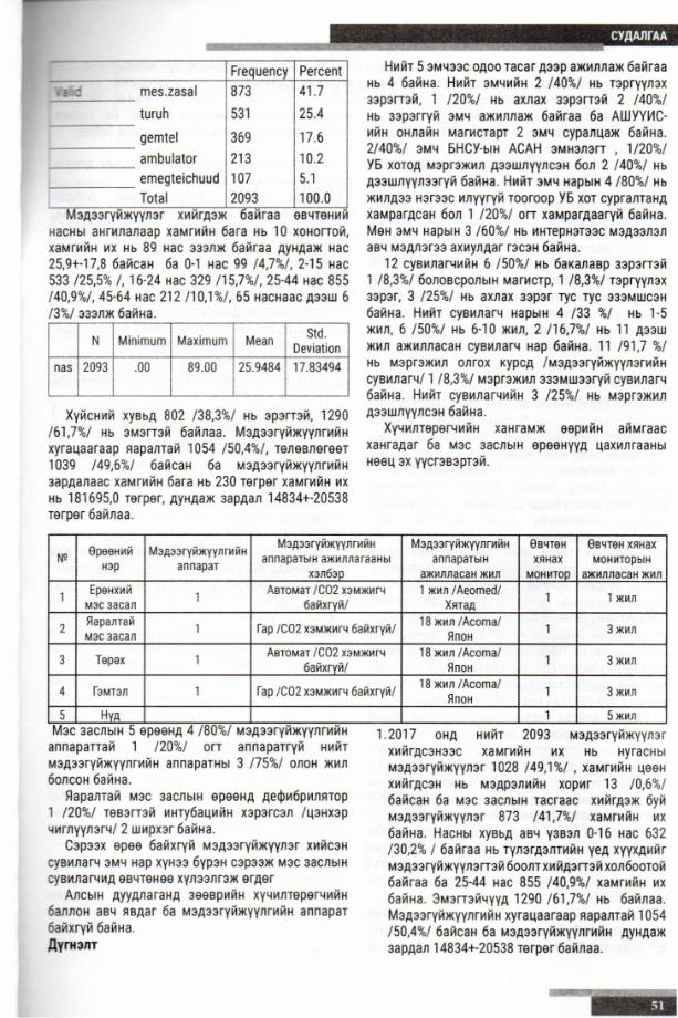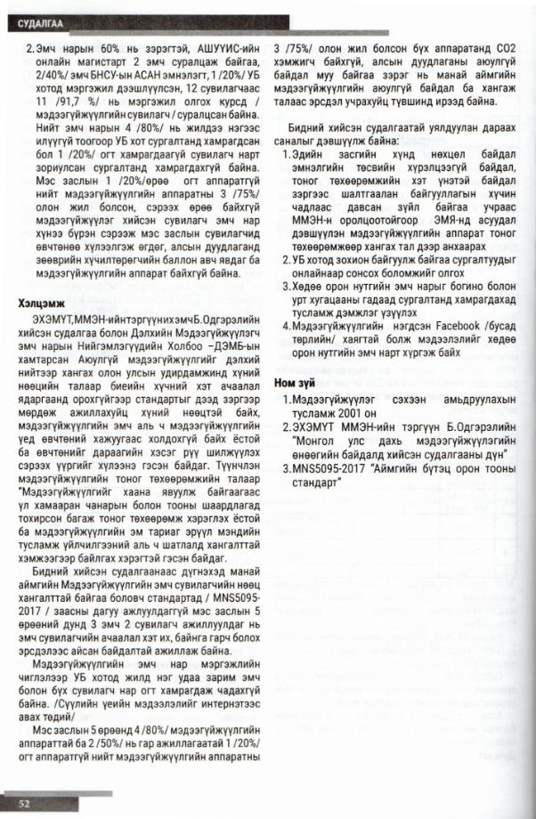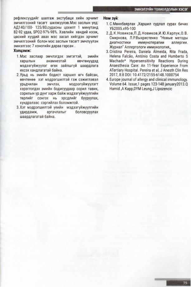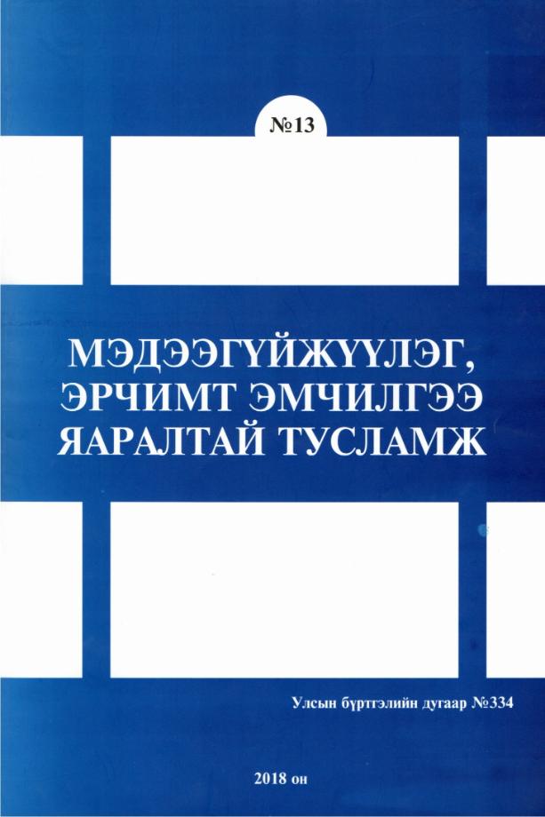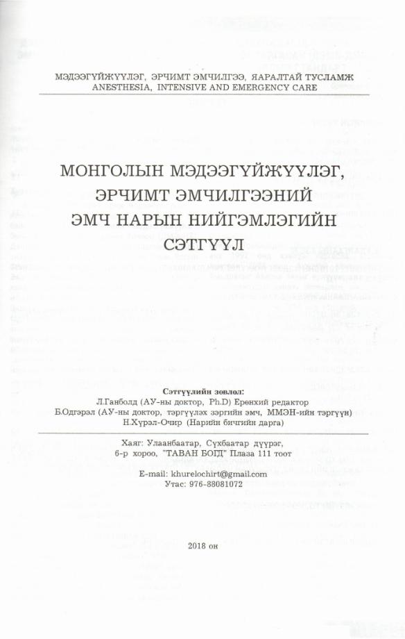Мэдээгүйжүүлэг, Эрчимт эмчилгээ, Яаралтай тусламж №13 - 2018 он