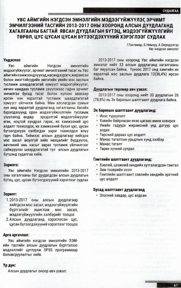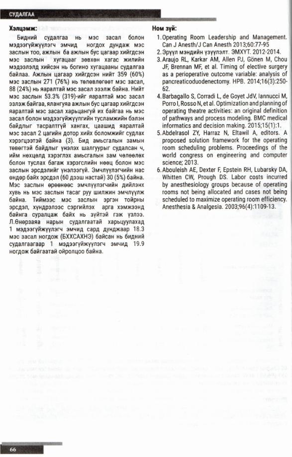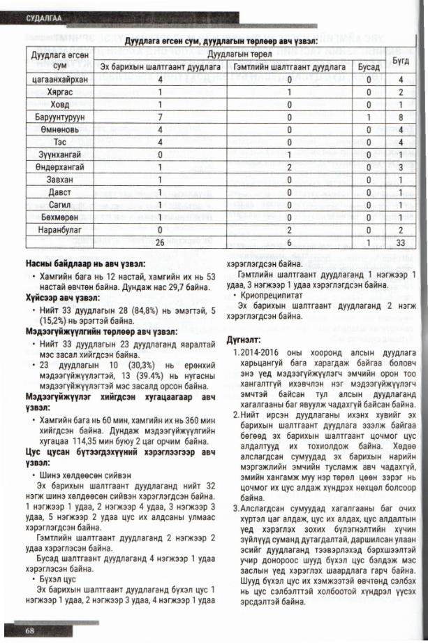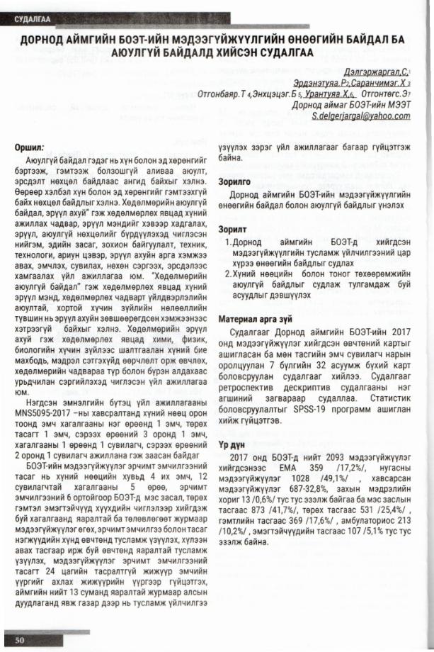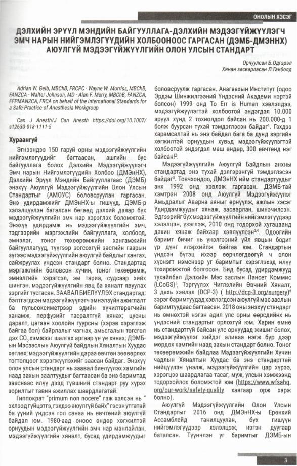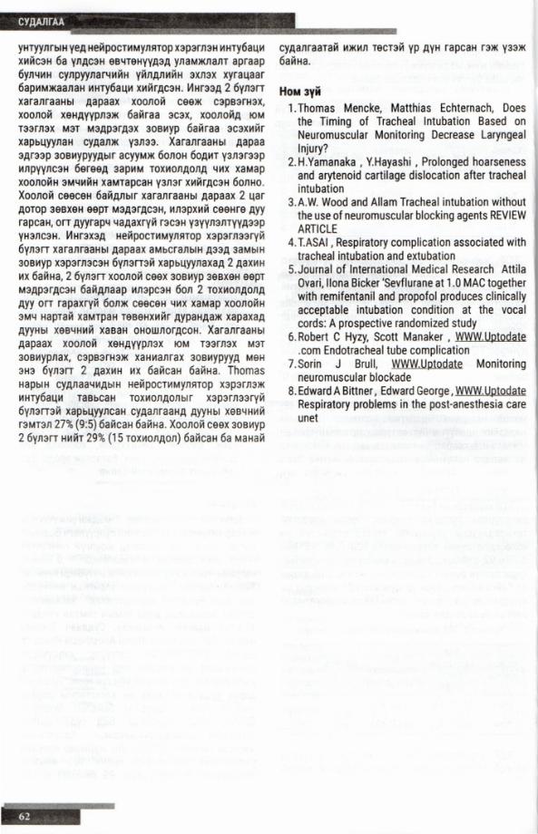Мэдээгүйжүүлэг, Эрчимт эмчилгээ, Яаралтай тусламж №13 - 2018 он