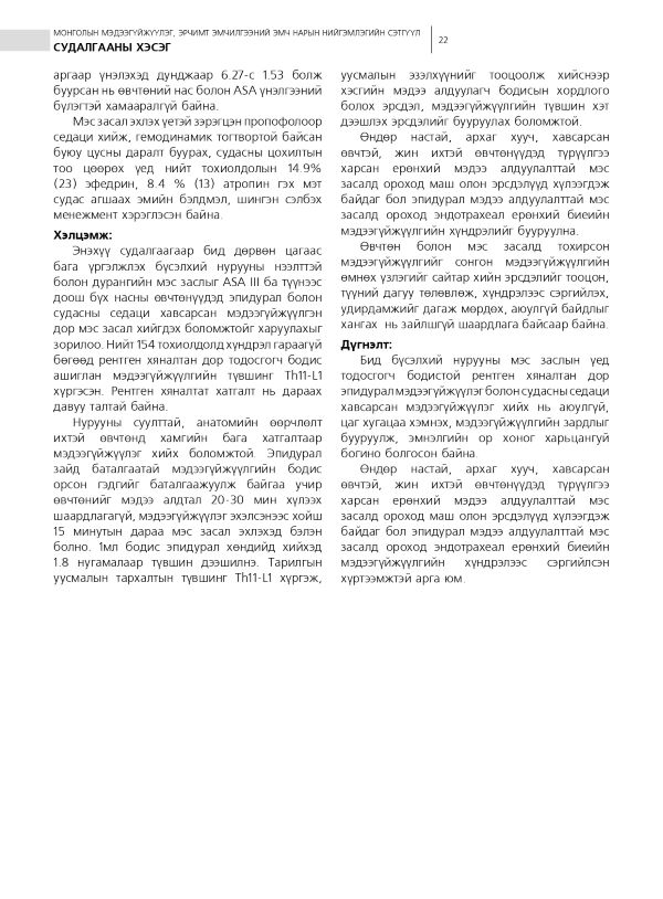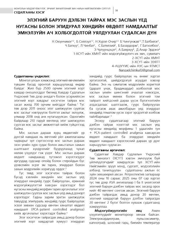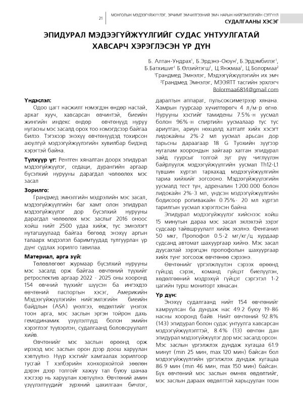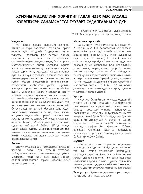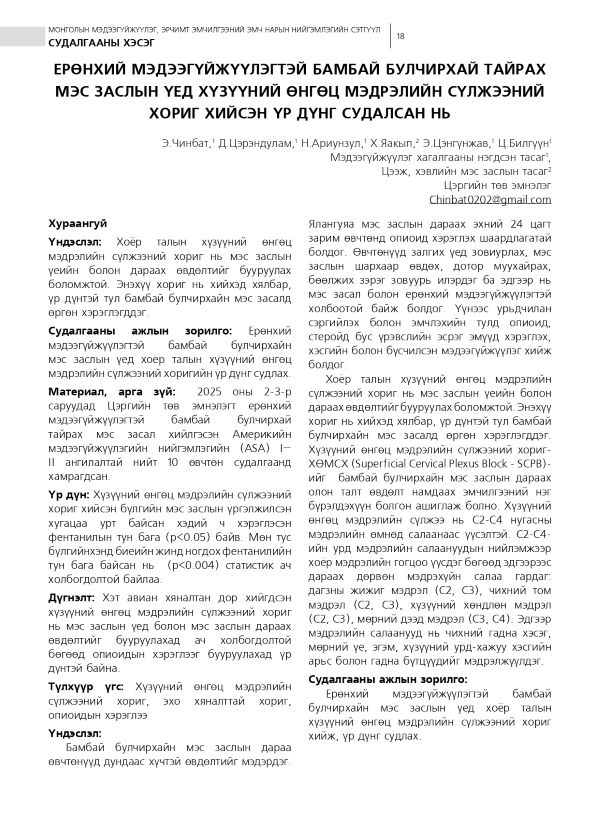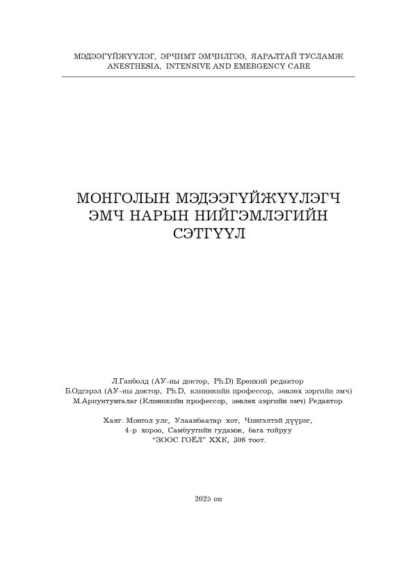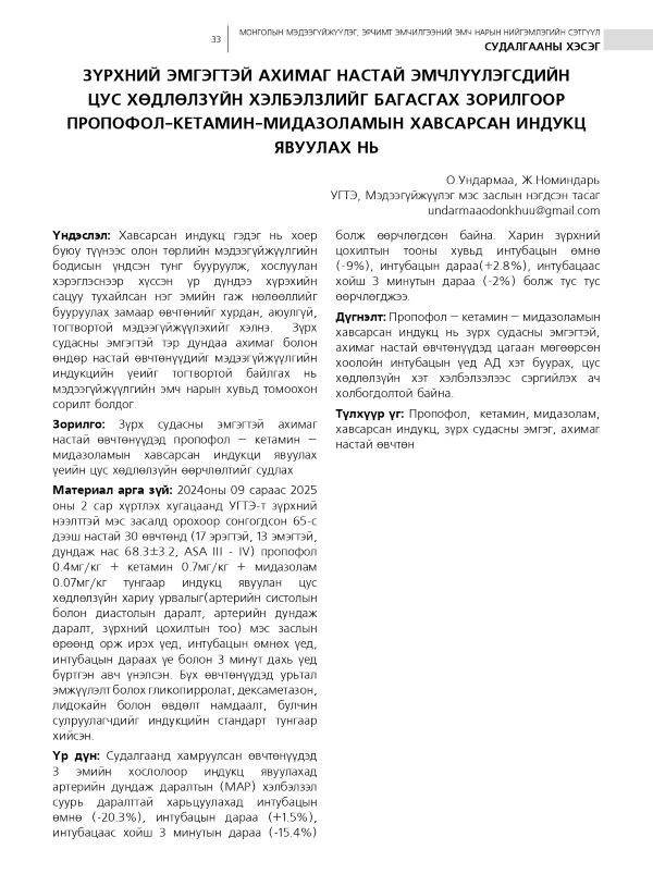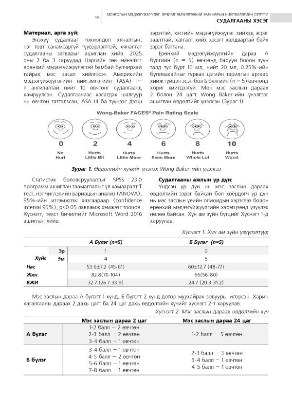 Мэдээгүйжүүлэг, Эрчимт эмчилгээ, Яаралтай тусламж №19 - 2025 он