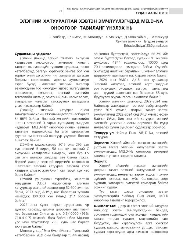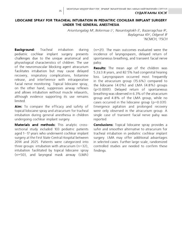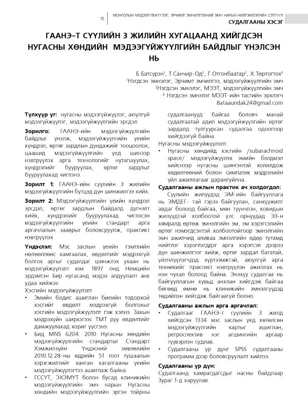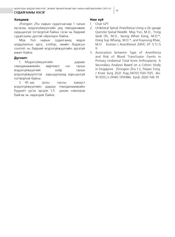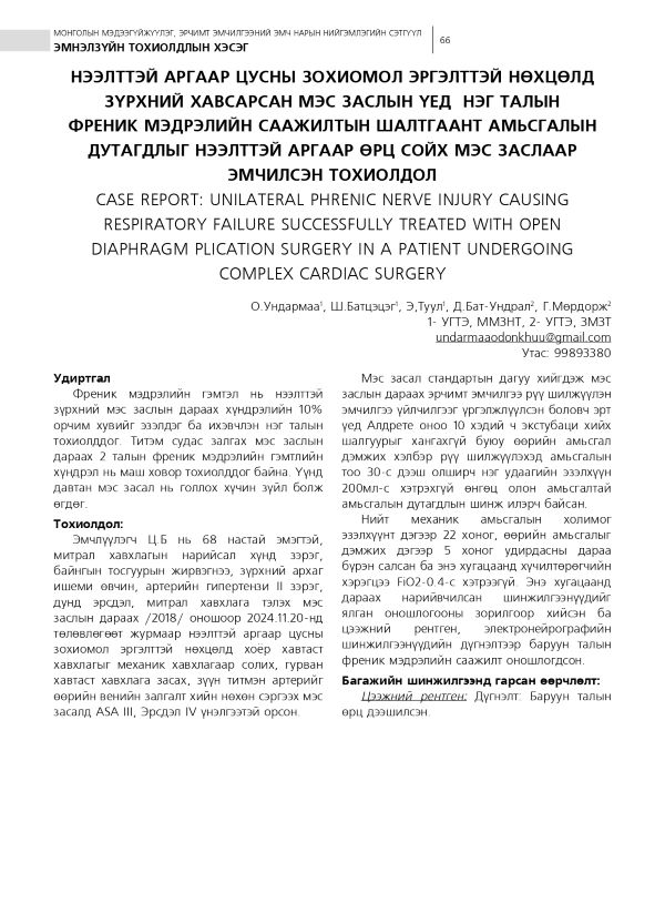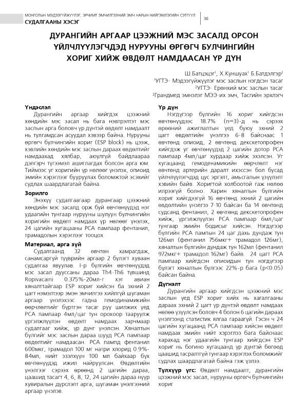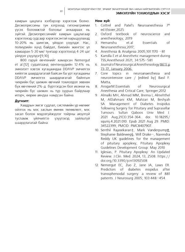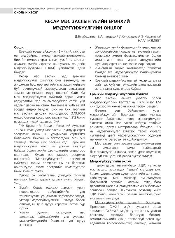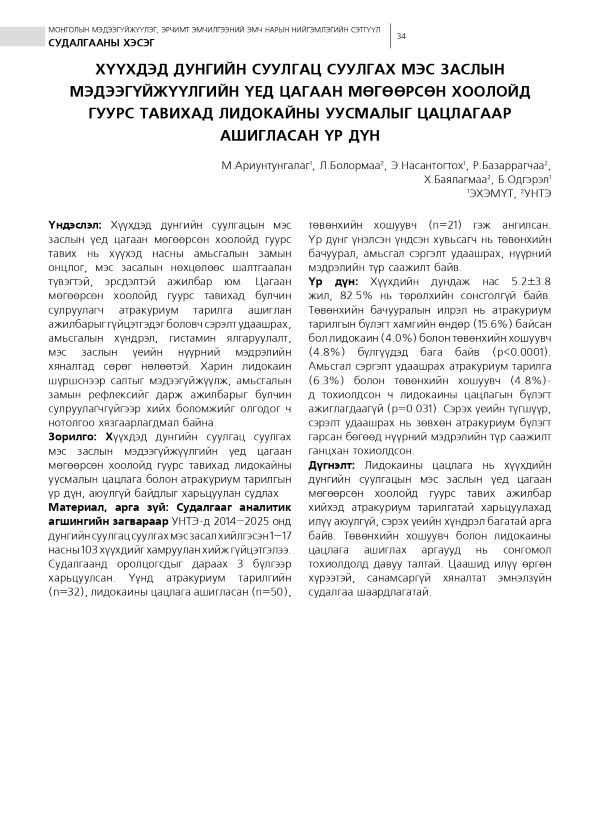 Мэдээгүйжүүлэг, Эрчимт эмчилгээ, Яаралтай тусламж №19 - 2025 он